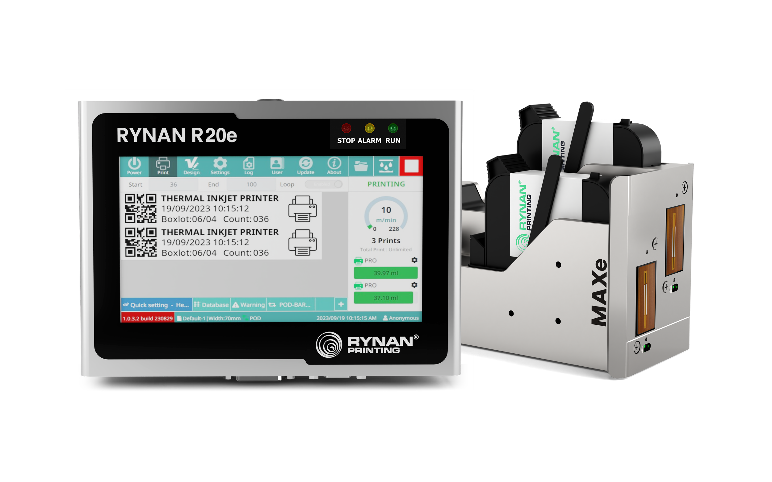 Unlock versatile, high-quality coding for every packaging need with the RYNAN R20e paired with PROe, MAXe, and REACHe printheads.